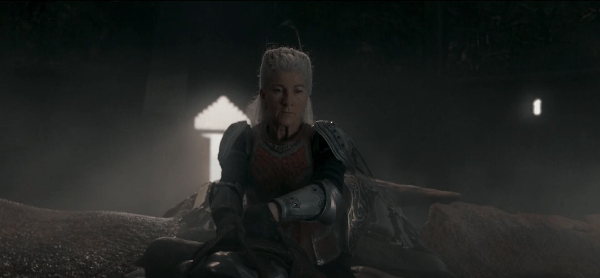 Sin embargo, ella decide no matarlos. Además, le ordena a su dragón que vuele fuera de ahí. El que Rhaenys haya decidido no asesinar a la reina se debe a la empatía que tiene por Alicent. Ella la vio como madre, protegiendo a su hijo.