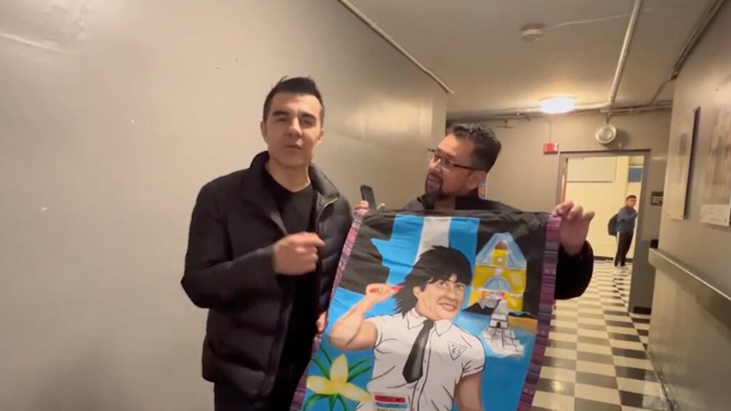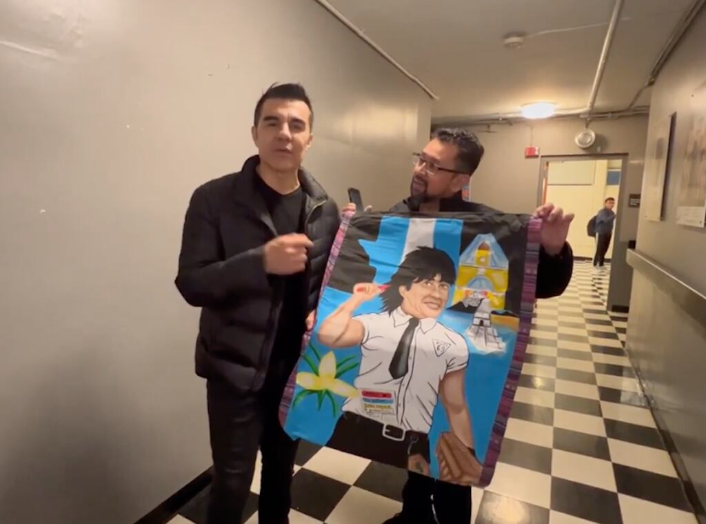 “Acabo de terminar mi show en Charlotte, Estados Unidos (EE.UU) y me acaban de regalar esta pintura que me hizo Mario de Guatemala. Me pintó de El Vitor con la bandera de Guatemala atrás y algo típico. Ah, muchas gracias, que bonito se siente. Qué padre”, expresó el artista mexicano.