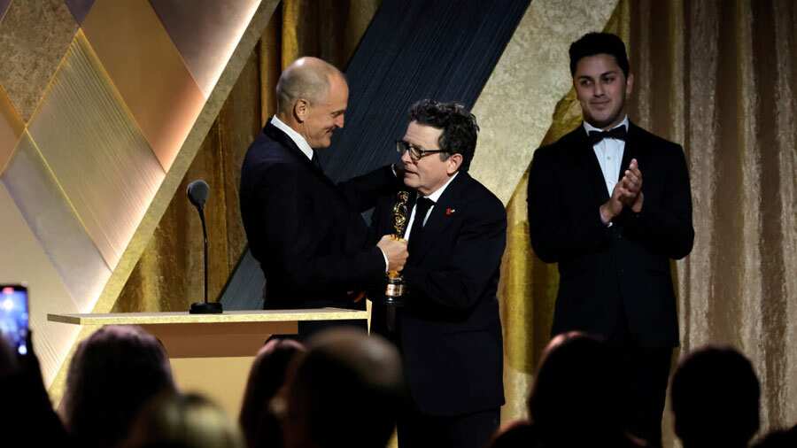 El actor Michael J. Fox recibió el sábado un Oscar honorífico por su campaña para recaudar fondos para investigar el Parkinson, una enfermedad neurodegenerativa que sufre desde hace décadas.