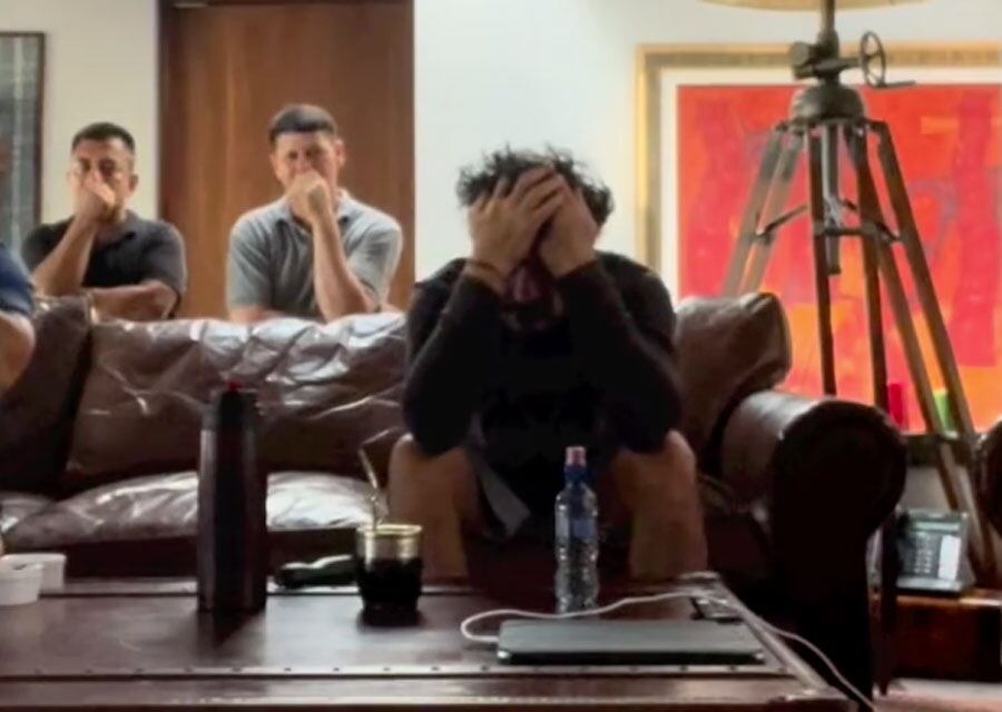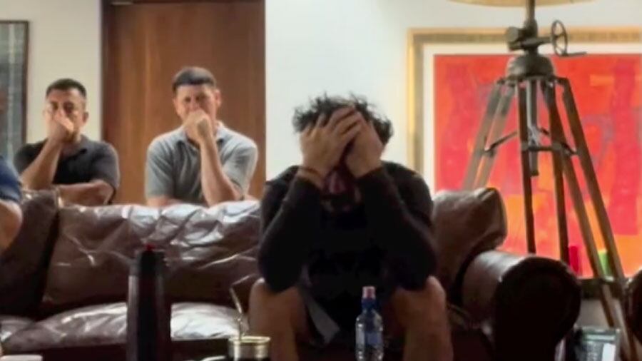 En las imágenes se puede ver que el artista se jala el pelo desesperadamente, justamente cuando se realizaba la tanda de penaltis en la gran final.