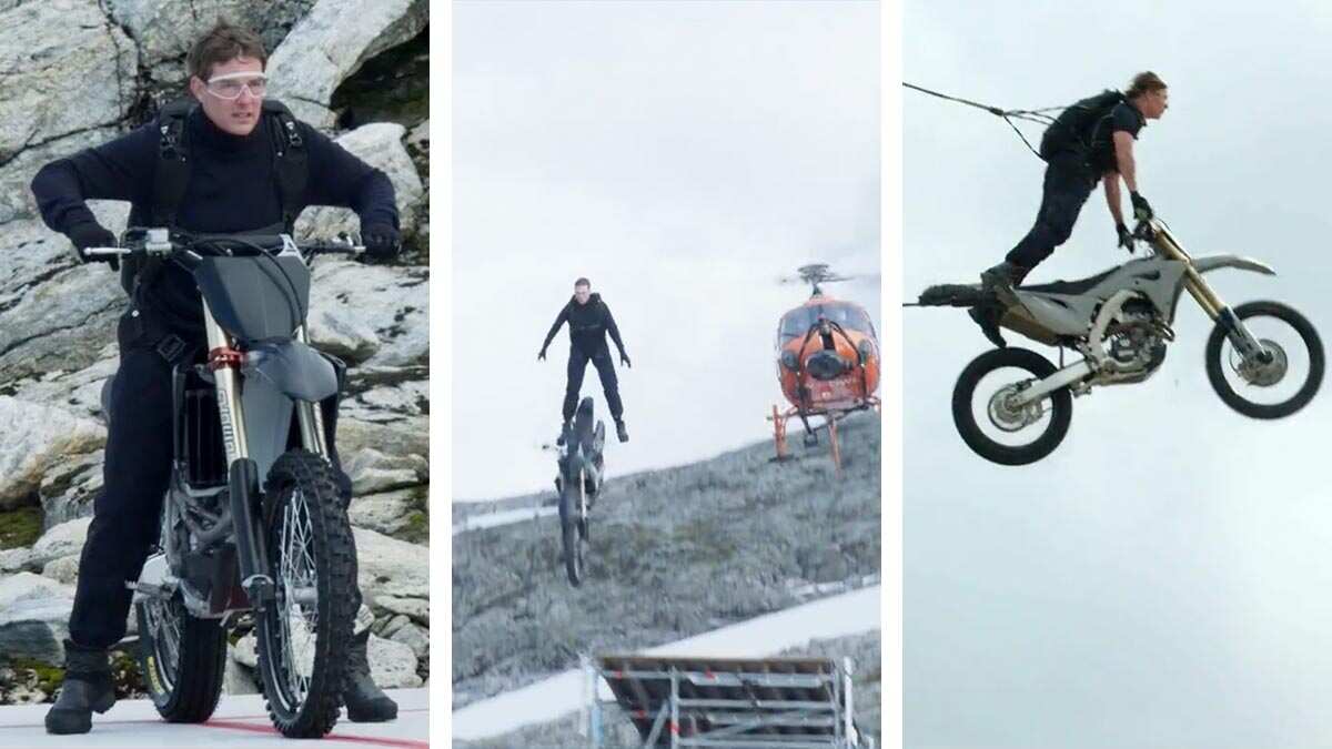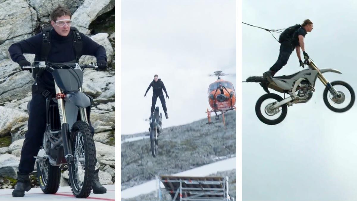 La secuencia fue filmada en Hellesylt, Noruega, en noviembre del 2020, y muestra a la estrella de Hollywood y a su equipo preparándose para realizar una acrobacia que les tomó años de planeación, donde el actor de 60 años saltó en motocicleta hacia un acantilado. La escena se repitió en seis ocasiones para que quedara a la perfección.