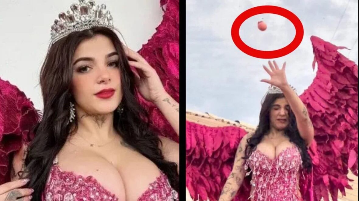 La modelo de OnlyFans llegó al evento vestida de ángel llevándose los aplausos del público. Pero las cosas se salieron de control , ya que a mitad del recorrido un grupo de personas la recibieron a ‘huevazos’.