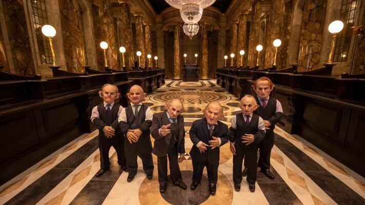 Mientras que en Harry Potter y la Piedra Filosofal fue un duende del banco de Gringotts (los que manejaban el banco), específicamente el que está parado junto a un taburete contando dinero.