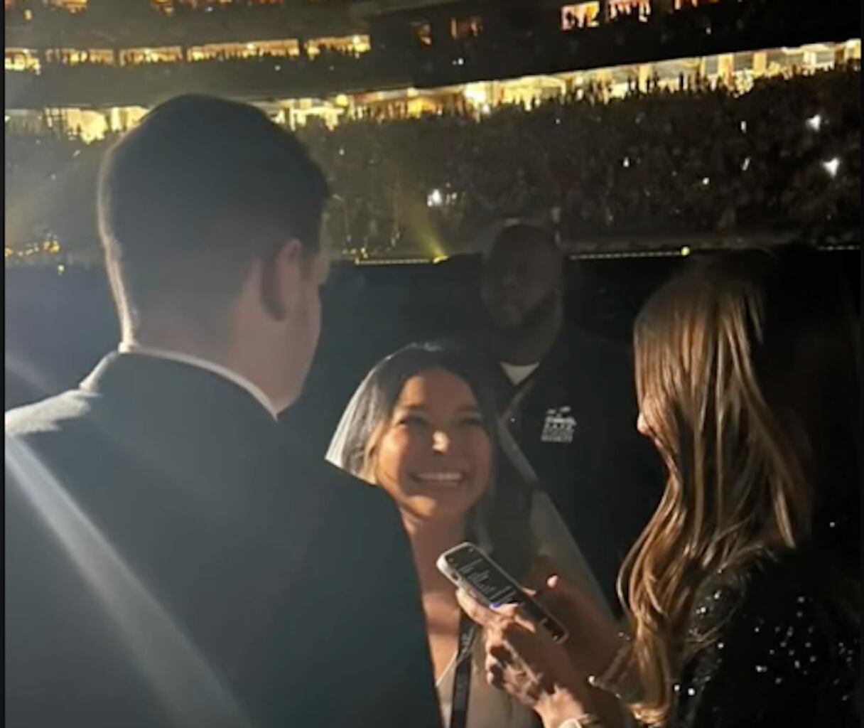Posteriormente, se ve a su amiga, aparte de ser la dama de honor, también fue la juez que oficializó el casamiento en el concierto. Después de celebrar la boda, los tres (novia, novia y amiga) disfrutan el concierto de Taylor Swift.