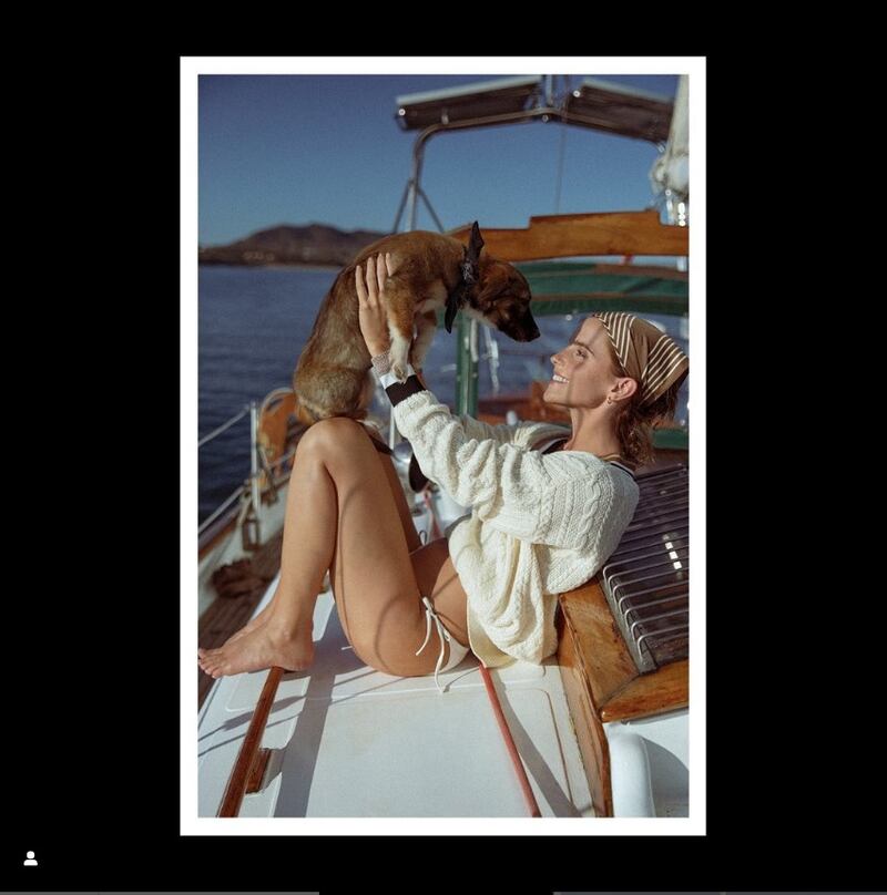En otra aparece a bordo de un velero, recostada y usando un bikini blanco mientras carga a su mascota. En menos de dos días la foto obtuvo más de un millón de likes.