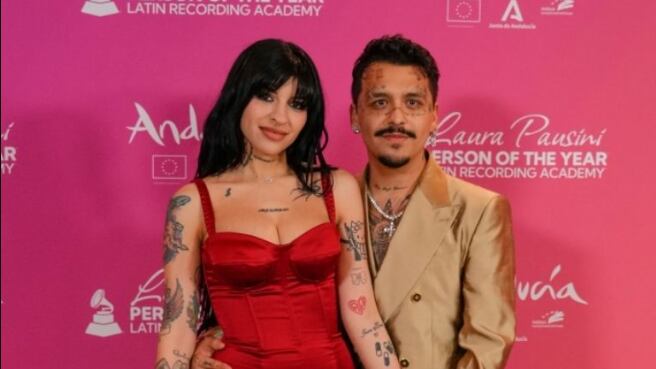 Cazzu y Christian Nodal se mostraron juntos y muy enamorados durante un evento dedicado a Laura Pausini previo a la entrega de los Latin Grammy 2023.