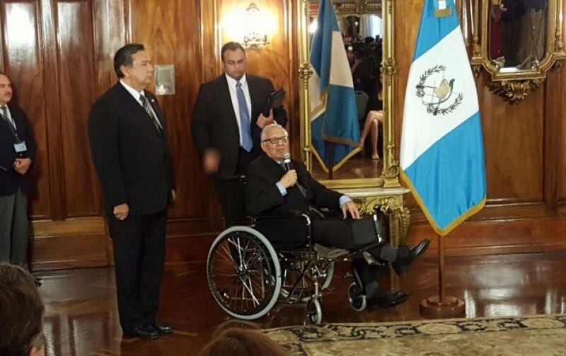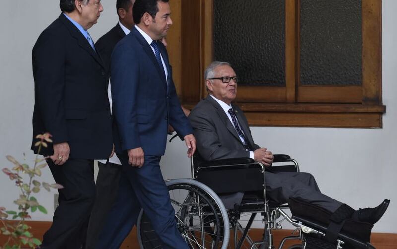 El presidente Maldonado realizó destituciones a los ministros de Pérez Molina el 16 de septiembre. Dos días después fue intervenido quirúrgicamente en una rodilla tras sufrir una caída fuera de su despacho, lo que lo dejó en silla de ruedas por dos meses, y luego de ese tiempo, utilizar bastón .
