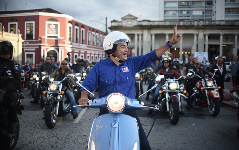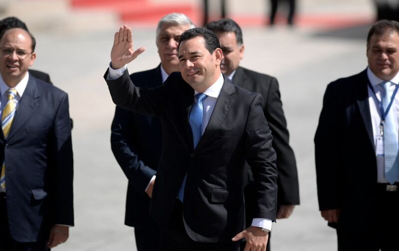 El gobierno de Morales se inicia bajo la sombra de los escándalos de corrupción que llevaron a su fin al gobierno del general retirado Otto Pérez Molina, escándalos que favorecieron a Morales en las elecciones, pues la población guatemalteca decidió decantarse por la opción que no representaba a la política tradicional.