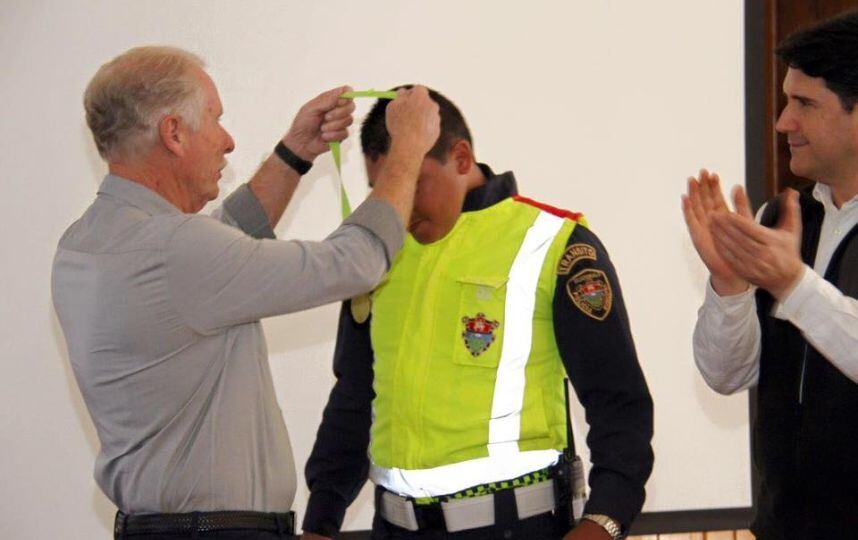 El alcalde capitalino, Alvaro Arzú, ha compartido fotografías en su cuenta de Facebook en la que se le aprecia al condecorar a un agente de la Policía Municipal de Tránsito (PMT).