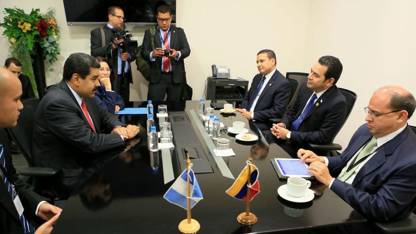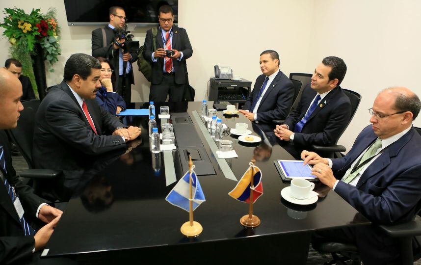 Después de haber participado en la sesión central de la IV Cumbre de la Comunidad de Estados Latinoamericanos y Caribeños (Celac), que se llevó a cabo en Quito, Ecuador, el mandatario Jimmy Morales se reunió con su homólogo de Venezuela, Nicolás Maduro.
