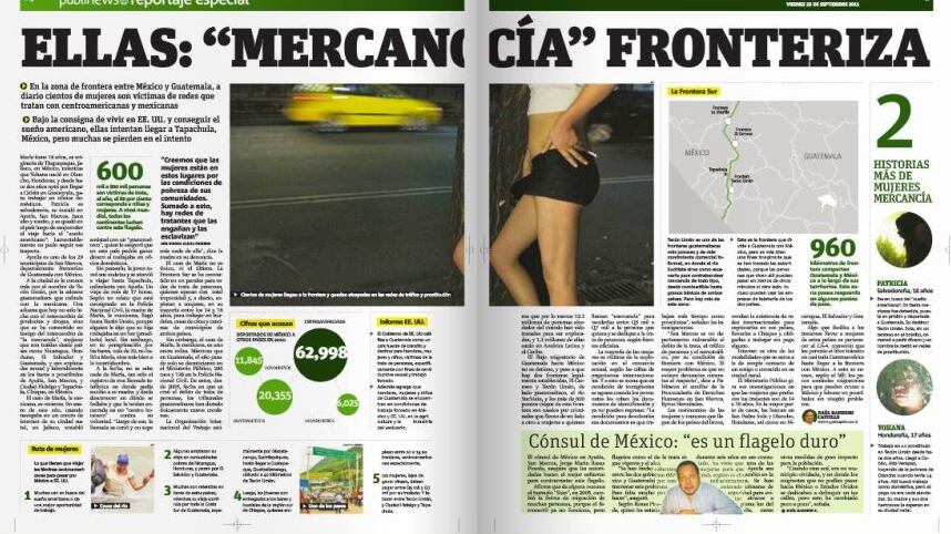 En septiembre de 2011 se realizó un recorrido por la frontera Sur entre Guatemala y México para conocer a fondo la problemática de la trata de mujeres.