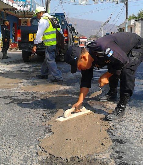 Se trata de uniformados que integran la Policia Integral Comunitaria. Los agentes están destacados en la comisaría de Salamá, en Baja Verapaz y han apoyado a la Municipalidad de San Miguel Chicaj con el bacheo de la ruta que conduce a la cabecera departamental.