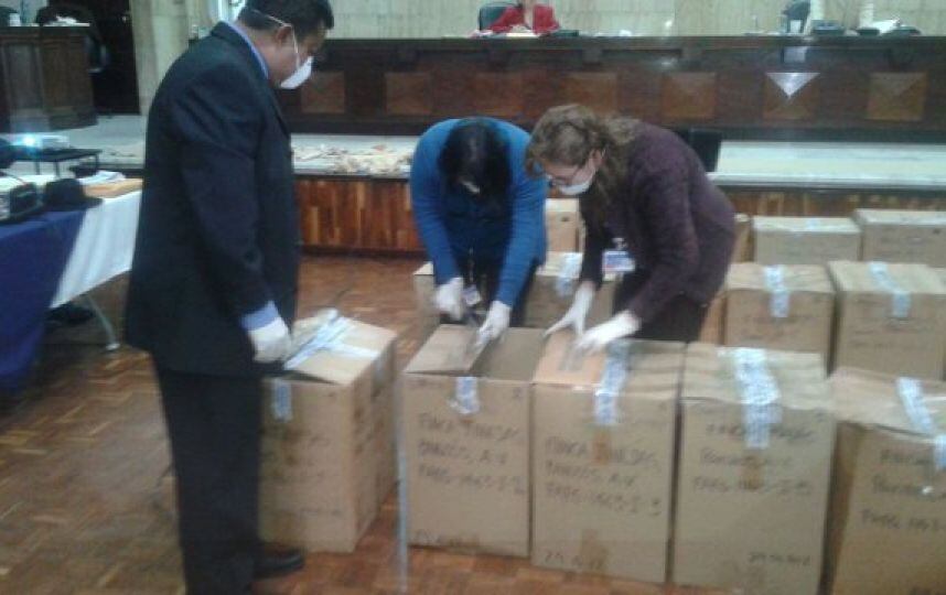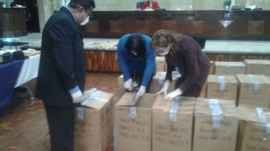 Los expertos forenses han llevado al Tribunal de Mayor Riesgo A 48 cajas que contienen las osamentas de las personas desaparecidas en la finca Las Tinajas, en Panzos, Alta Verapaz durante el juicio a dos militares retirados por explotación sexual denominado Sepur Zarco.