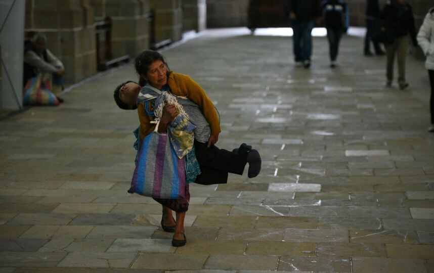 Julia Mutzutz, originaria de Patzún, caminó por varias cuadras con su hijo de 18 años a cuestas, para acudir a la Catedral Metropolitana a imponerse la cruz de ceniza.