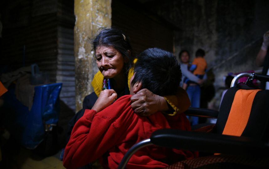 Se trata de la señora Julia Mutzutz, quien acudió a Catedral Metropolitana a la misa de Miércoles de Ceniza con su hijo de 18 años entre sus brazos, debido a que es discapacitado y a quien lamentablemente le robaron su silla de ruedas.