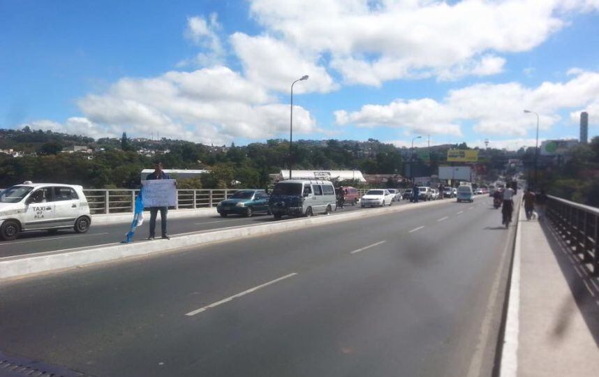 Varios jóvenes han orado y mostrado algunos carteles dirigidos al presidente Jimmy Morales para que se realice un estudio de daños en el puente Belice, el principal ingreso a la ciudad desde el Atlántico.