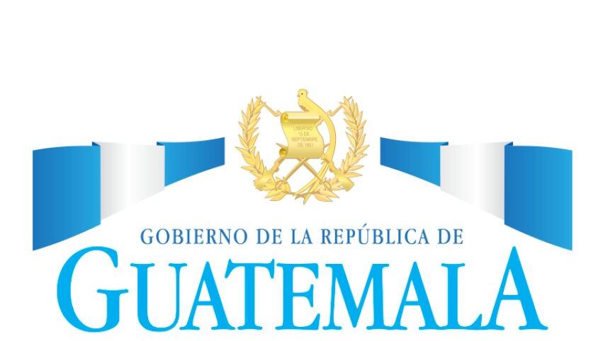 Este año el logo cambia, con un fondo blanco, el escudo nacional, dos banderas a los costados y las palabras Gobierno de la República de Guatemala en el centro con letras celestes.