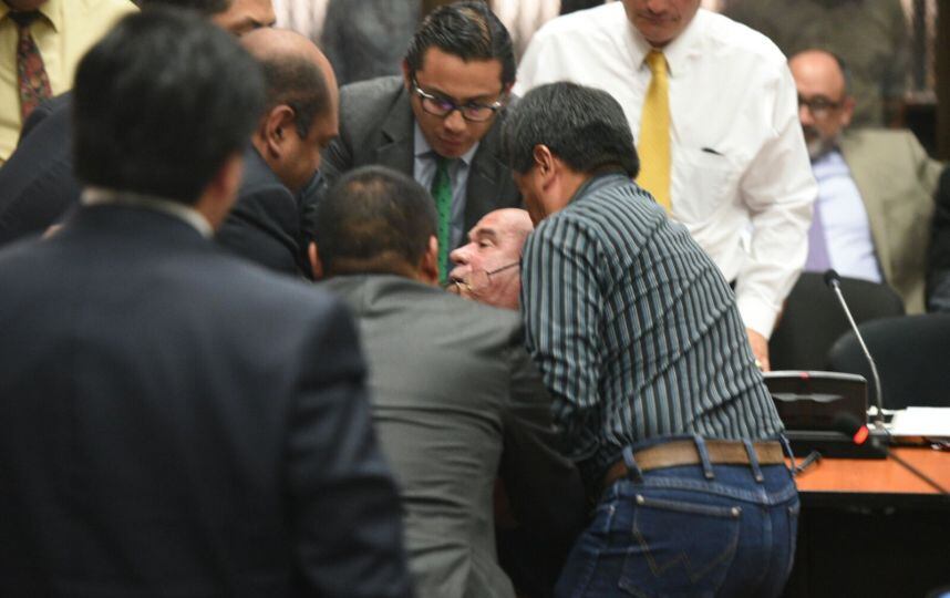 Tras discutir con el juez Miguel Ángel Gálvez, indicó que se “sentía mal de salud” y reunió sus cosas y dejó la sala. De pronto, al salir, se tropezó y aparentemente sufrió un desmayo.