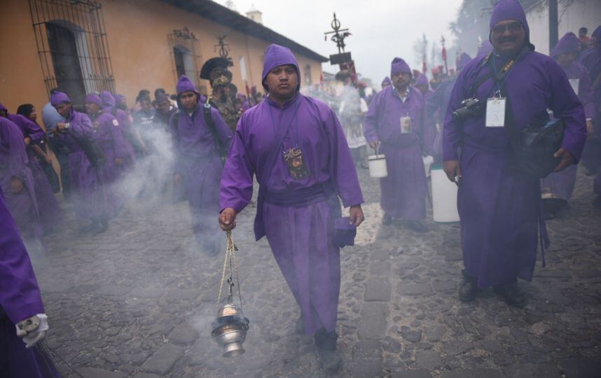 Este quinto domingo de Cuaresma, La Antigua Guatemala se llenó de color ya que la Consagrada Imagen de Jesús Nazareno de la Caída, de la iglesia de San Bartolomé Becerra, recorre las calles empedradas.