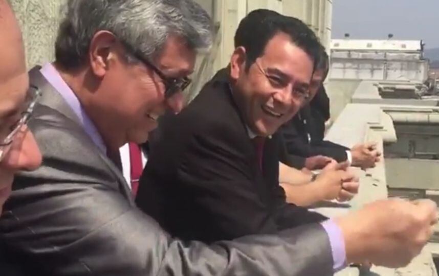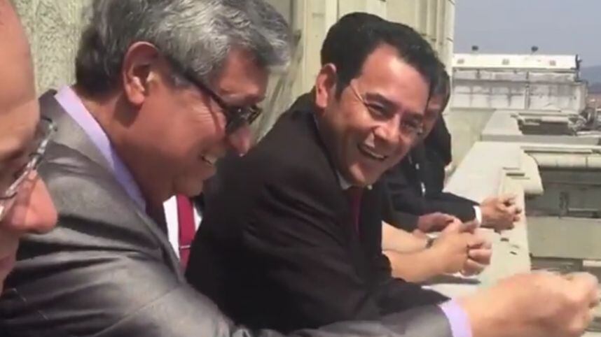 Ayer, el vicepresidente Jafeth Cabrera estuvo junto a Jimmy Morales en el palco del Palacio Nacional de la Cultura para ver el paso del desfile bufo de la Huelga de Todos los Dolores de la Usac.