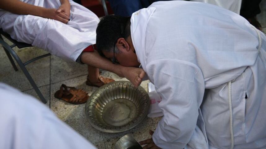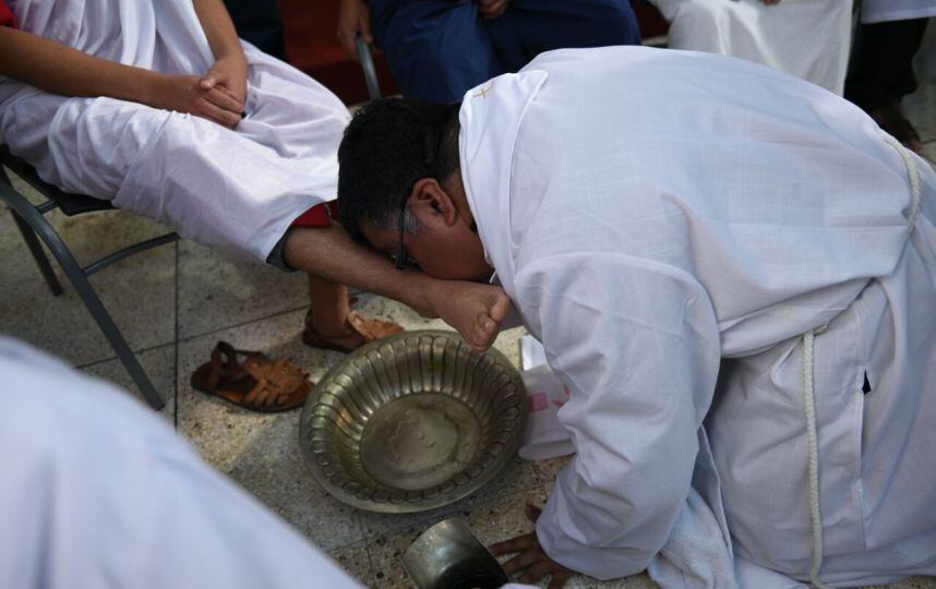 El gesto de lavar y besar los pies tiene un simbolismo de humildad, servicio y amor para la iglesia Católica. El lavatorio fue presidido por el párroco del Calvario, Manuel Chilín.