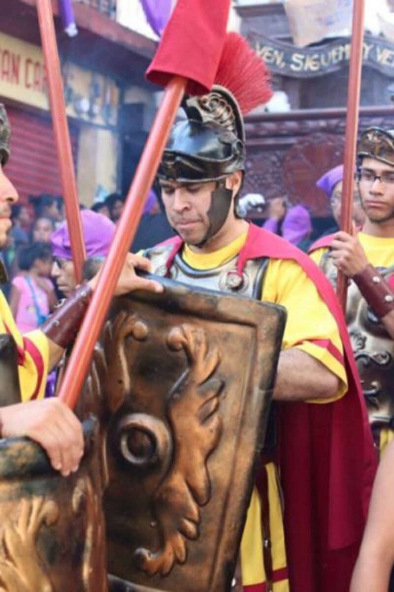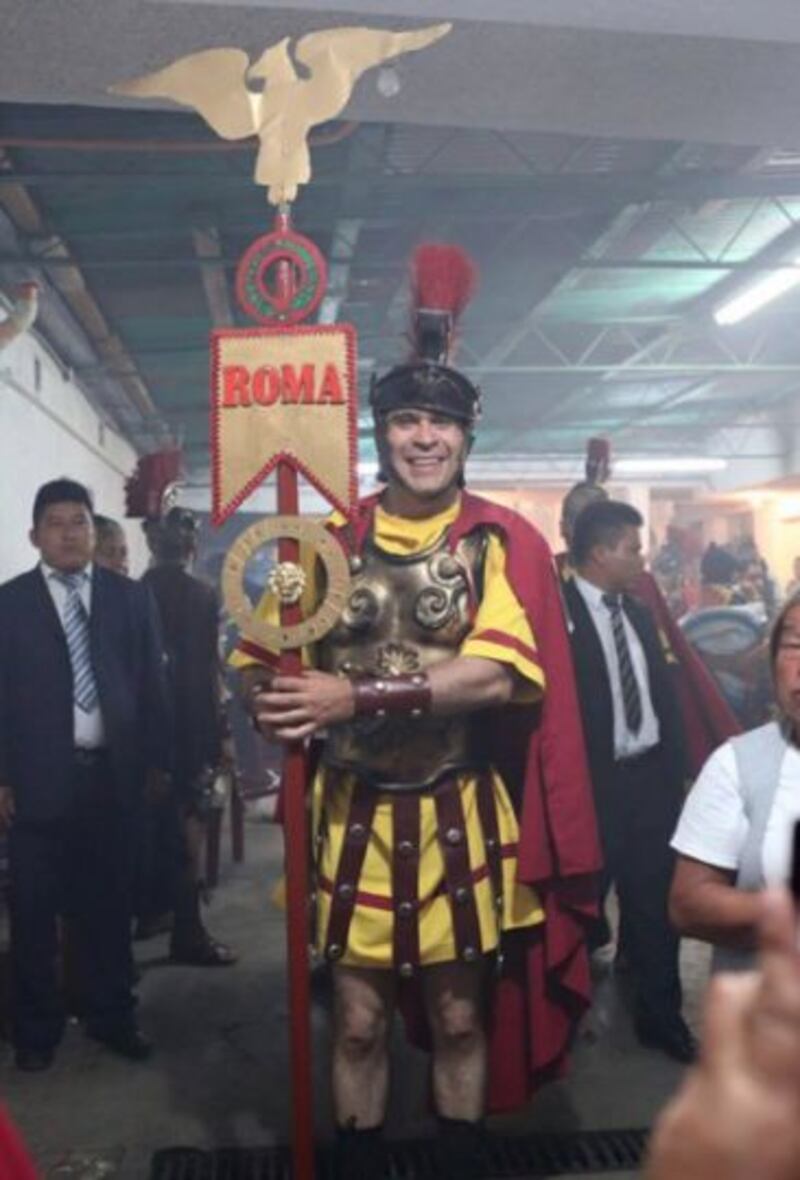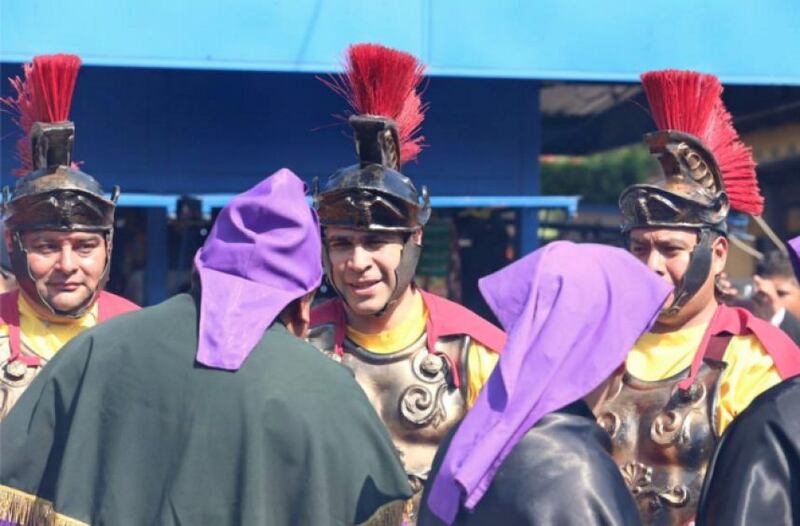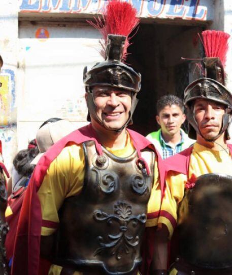El alcalde de Mixco, Neto Bran, salió a las calles vestido de soldado romano. Él aseguró en sus redes sociales que lo ha hecho en otros años y no quiso romper con la tradición.