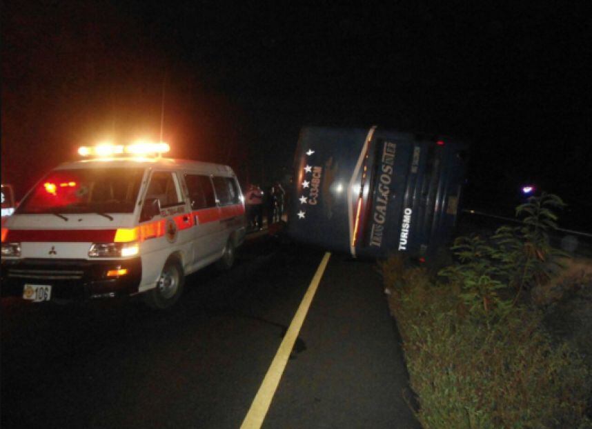 Una pullman volcó en el kilómetro 125 de la ruta al Pacífico a las 3:15 horas. Bomberos Voluntarios auxiliaron a pasajeros heridos.