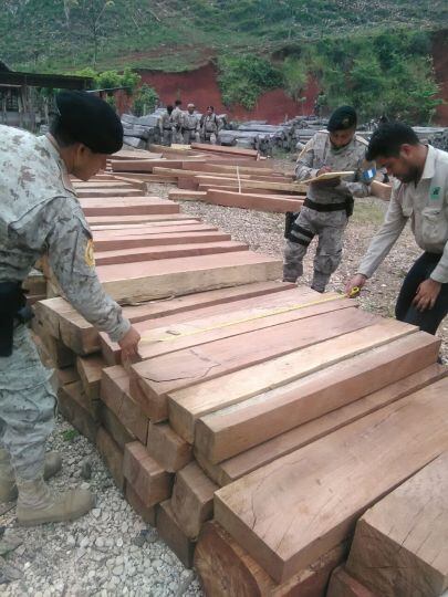 El reporte policial detalla que tenía 60.88 metros cúbicos de rosul y 18.83 metros cúbicos de Bálsamo, en trozas.