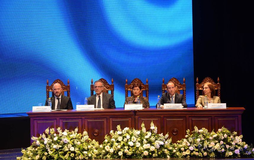 En la mesa principal estuvieron presentes los presidentes del Congreso, Mario Taracena; de la República, Jimmy Morales; y del Organismo Judicial, Ranulfo Rojas.