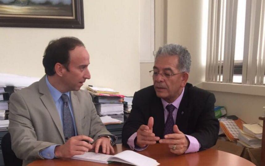 El procurador de los Derechos Humanos Jorge de León visitó a Miguel Gálvez, titular del Juzgado de Mayor Riesgo B, quien denunció haber sido intimidado durante la resolución del caso de fraude en la Portuaria la semana pasada que dejó como cabecillas al expresidente Otto Pérez y a la que fue su vicegobernante Roxana Baldetti.