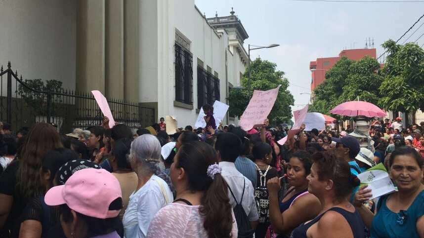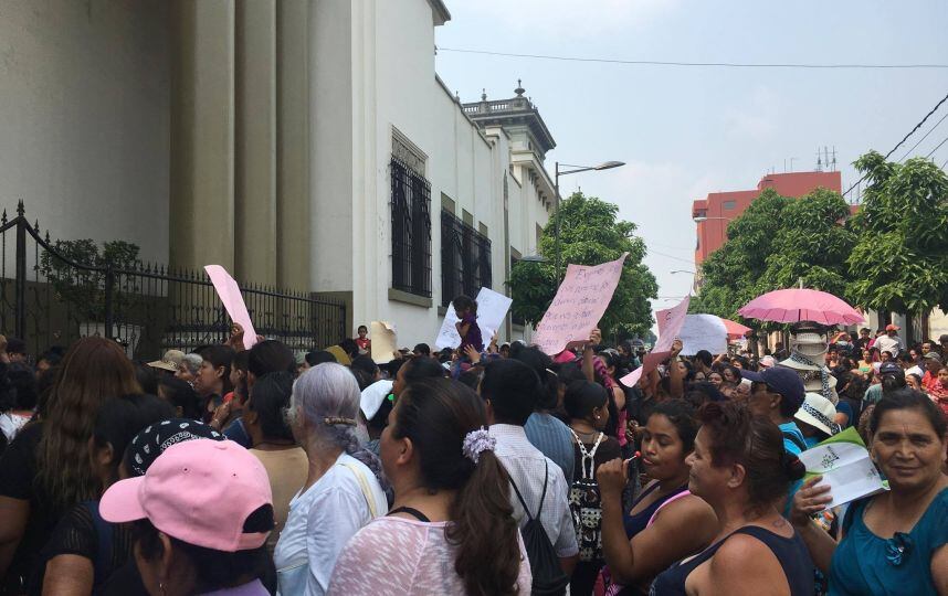Un grupo de beneficiarios de la bolsa de alimentos que entrega el gobierno como parte de los programas sociales manifestó frente a la Casa Presidencial, en la zona 1, para exigir una respuesta clara de las autoridades.