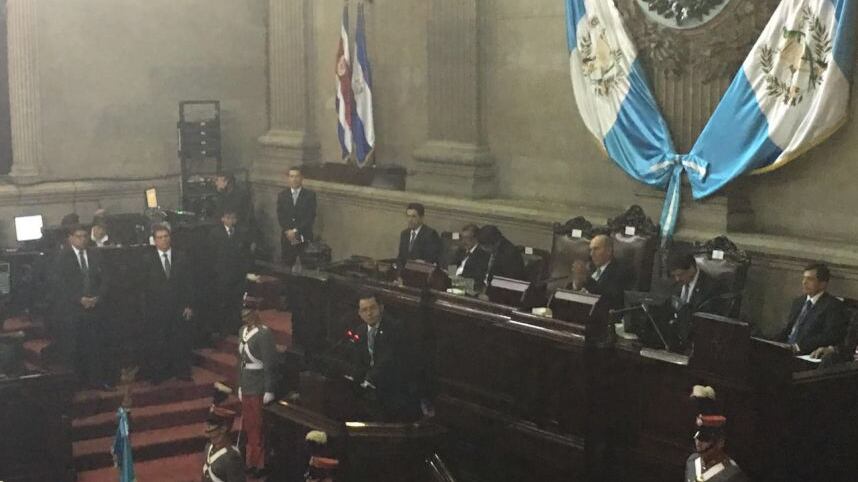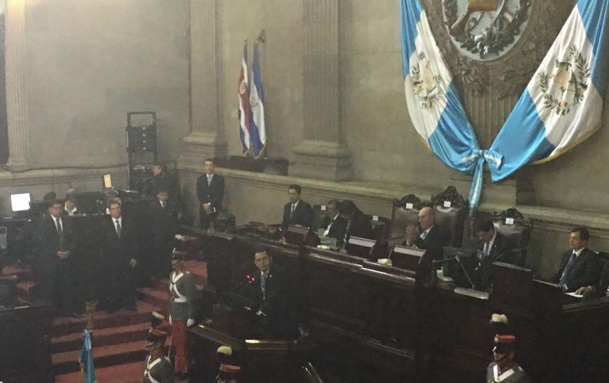 “Algunos hablan de refundar del Estado, pero les invito que mientras pretenden refundar el Estado que cumplan la ley”, dijo el presidente, Jimmy Morales, en su discurso ante el Congreso de la República en la sesión solemne conmemorativa por los 31 años de la Constitución.