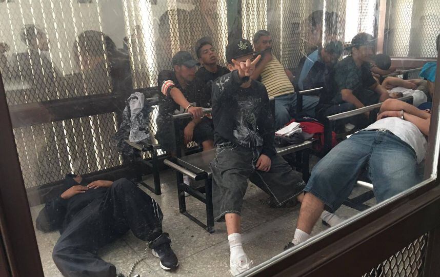 El piso y las bancas de la carceleta del Tribunal de Mayor Riesgo A sirvieron de cama para algunos de los pandilleros de la Mara Salvatrucha que prefirieron dormir mientras se desarrollaba el juicio en su contra.
