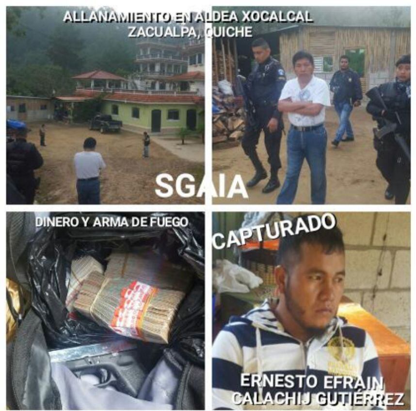 La portavoz del MP, Julia Barrera, detalló que en el allanamiento para detener a Calachij Riz fueron encontradas tres bolsas con dinero, suma que aún no ha sido contabilizada.