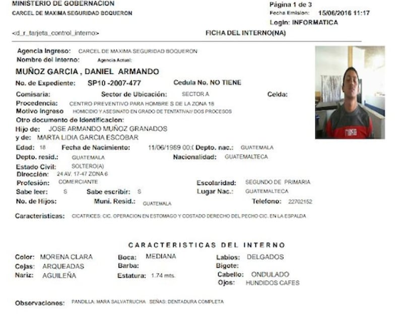 - Daniel Armando Muñoz García, procedente del Preventivo de la zona 18 e integrante de la Mara Salvatrucha. Es acusado de asociación ilícita.