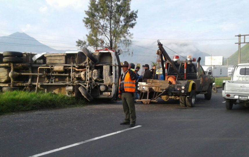Otro accidente de tránsito se registró en el kilómetro 34 de la ruta Interamericana al occidente. En el sitio tres personas resultaron heridas tras chocar un camión repartidor contra un picop, informaron los Bomberos Municipales Departamentales.