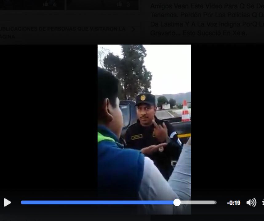 Hubo una discusión y uno de los agentes le hizo una señal obscena a una mujer que lo grababa con su celular.