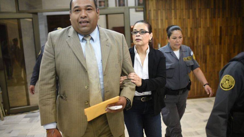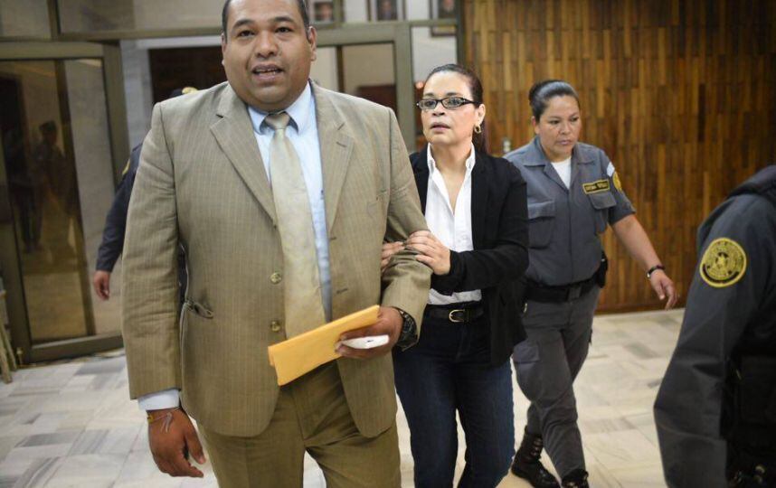Estrada escolta en todo momento a la exfuncionaria, tanto que en la audiencia del 6 de junio, tras ser abordada por los periodistas, el abogado abrazó y levantó a Baldetti para subirla al ascensor de la torre de Tribunales.