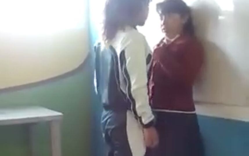 El audio del video es dificultoso, pero las imágenes evidencian un reclamo de la estudiante que viste un uniforme deportivo a otra que utiliza uno de diario.