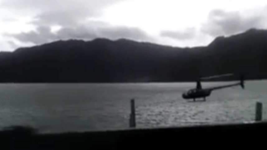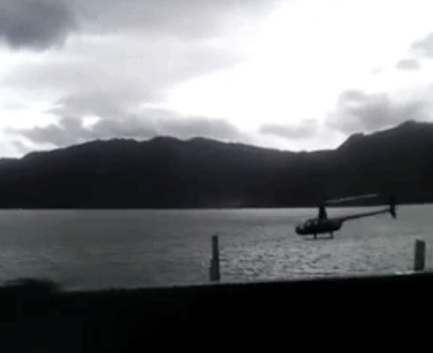 Un grupo de trabajadores de la construcción captaron en video, con un teléfono celular, el momento justo en el que el helicóptero cayó en el Lago Atitlán esta mañana.