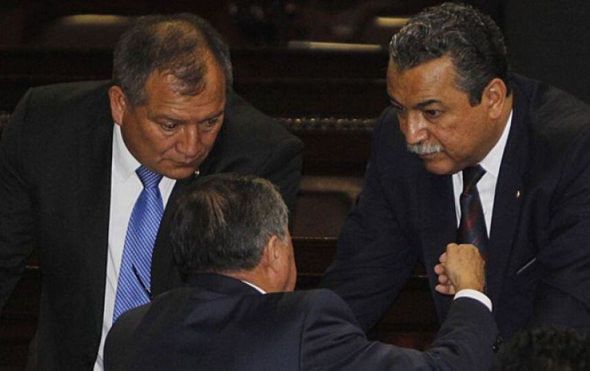El diputado Manuel Conde Orellana mostró su inconformidad en pleno hemiciclo este día en que, finalmente, los diputados rechazaron la enmienda al artículo 100 de la Ley de Servicio Civil que fue presentada por el presidente del Congreso, Mario Taracena, y el parlamentario antes mencionado.