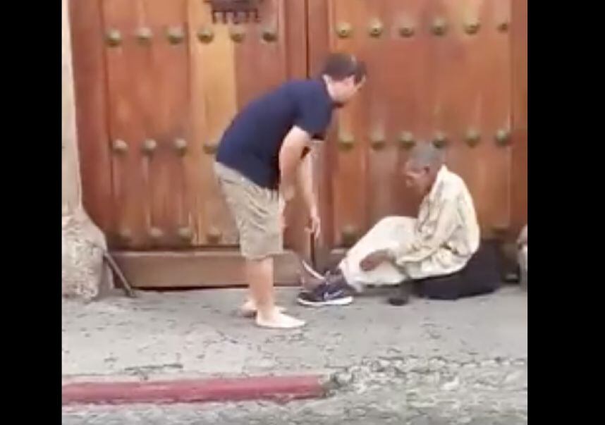El hombre, sin titubear, se “puso en los zapatos de un indigente”, le obsequió su calzado y continuó caminando descalzo.