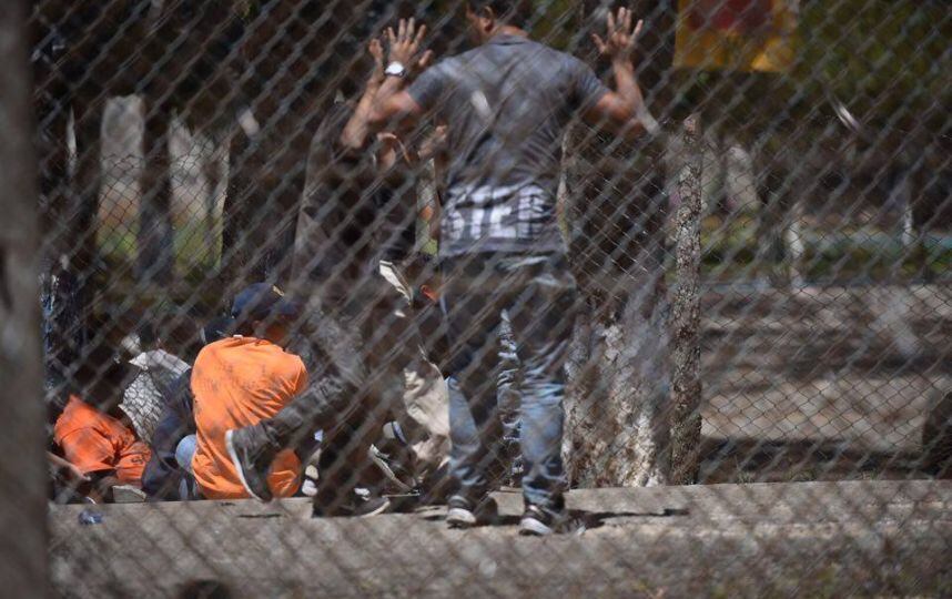 Afuera de la cárcel, en Fraijanes, están decenas de familiares de los reos y se observan a decenas de guardias en autopatrullas ingresar en la cárcel.