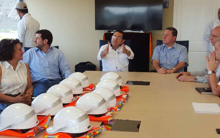 El presidente, Jimmy Morales, y la titular de la Procuraduría General de la Nación (PGN), Anabella Morfín, entre otros funcionarios, visitan la Terminal de Contenedores Quetzal (TCQ) luego que comenzara a discutirse la propuesta del interventor que incluye un resarcimiento al Estado.