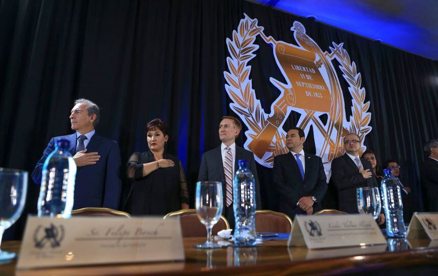 En el evento también participa el presidente del Organismo Judicial (OJ), Rafael Rojas, el presidente de la Corte de Constitucionalidad (CC), Neftaly Aldana, así como los empresarios Rolando Archila Dehesa, Juan Carlos Zapata y Felipe Bosch.