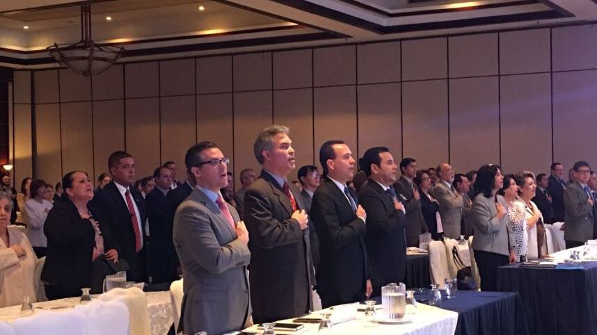Durante su discurso en el Encuentro Nacional por la Calidad Educativa y las Nuevas Tecnologías, el presidente Jimmy Morales le pide ayuda a los maestros para cumplir los 180 días de clases.