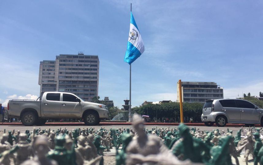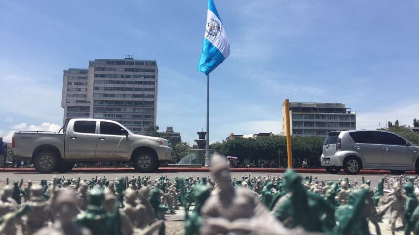 En la conmemoración del Día internacional de las víctimas de desapariciones forzadas, que es el 30 de agosto, varias asociaciones formaron frente al Palacio Nacional de la Cultura la palabra culpable con soldados de plástico.