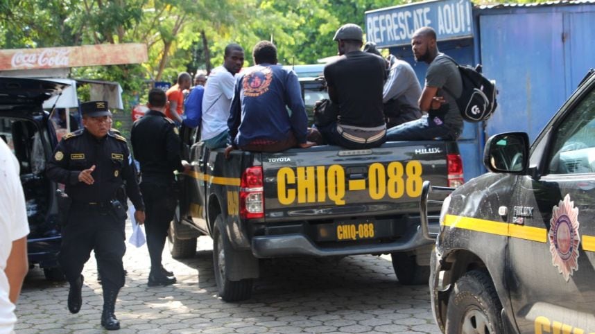 Según en reporte de la PNC, se trata de 54 personas originarias de la República del Congo y de Senegal, quienes fueron trasladadas a la sede de la Dirección General de Migración en la frontera Agua Caliente, Chiquimula.