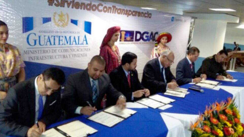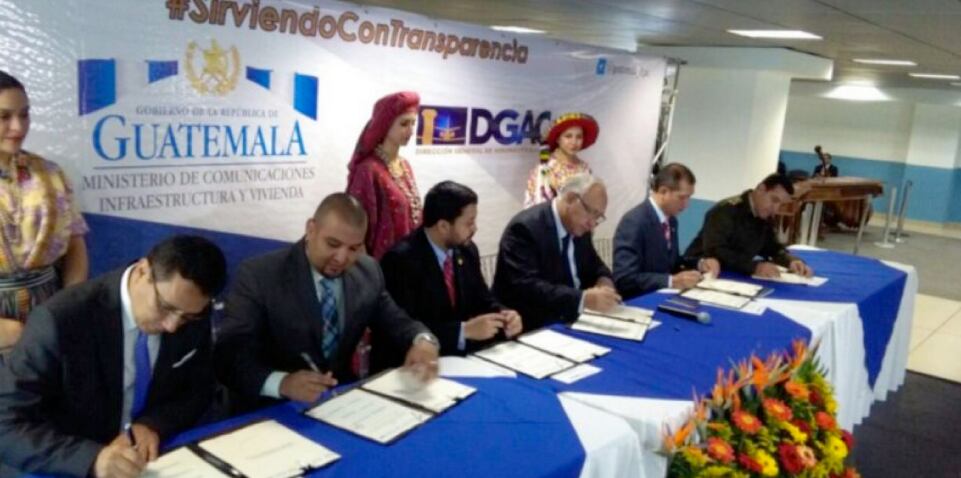 El convenio fue firmado por el ministro de Gobernación, Francisco Rivas, el de la Defensa, Williams Mansilla, el de Comunicaciones, Aldo García; así como el director del Instituto Guatemalteco de Turismo (Inguat), Jorge Chajón, el titular de la Dirección General de Aeronáutica Civil, Carlos Velásquez y el jefe de la Superintendencia de Administración Tributaria (SAT), Juan Francisco Solórzano Foppa.