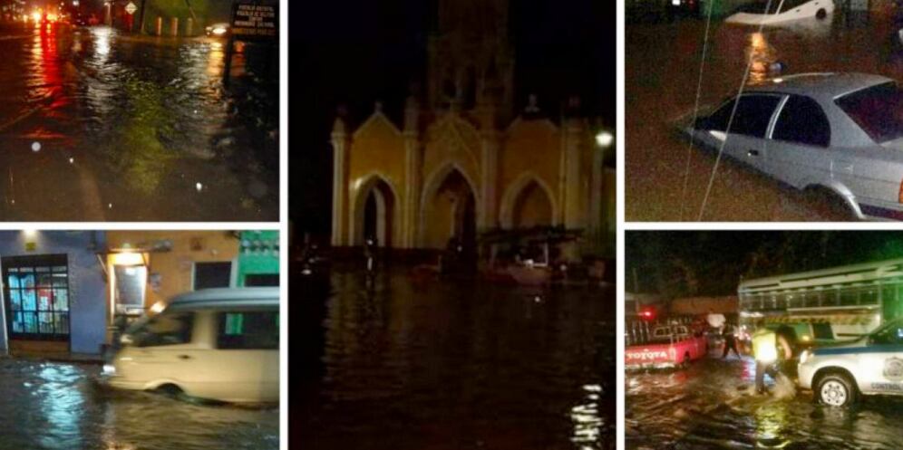 El Departamento de Tránsito de la Policía Nacional Civil (PNC) publicó varias fotografías en las que se evidencian las inundaciones en algunas calles de la ciudad colonial.